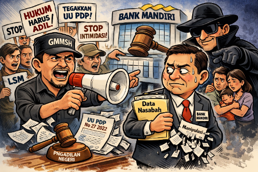 Makassar,Vintara.com – Aliansi GMMSH (Gerakan Melawan Mafia Supremasi Hukum) yang tergabung dalam koalisi sejumlah organisasi masyarakat (Ormas), lembaga swadaya masyarakat (LSM), dan lembaga bantuan hukum (LBH), secara tegas meminta pertanggungjawaban dari PT Bank Mandiri (Persero) Tbk atas dugaan manipulasi data tingkat tinggi, intimidasi terhadap keluarga korban, serta pelanggaran serius terhadap Undang-Undang Nomor 27 Tahun 2022 tentang Pelindungan Data Pribadi (UU PDP).