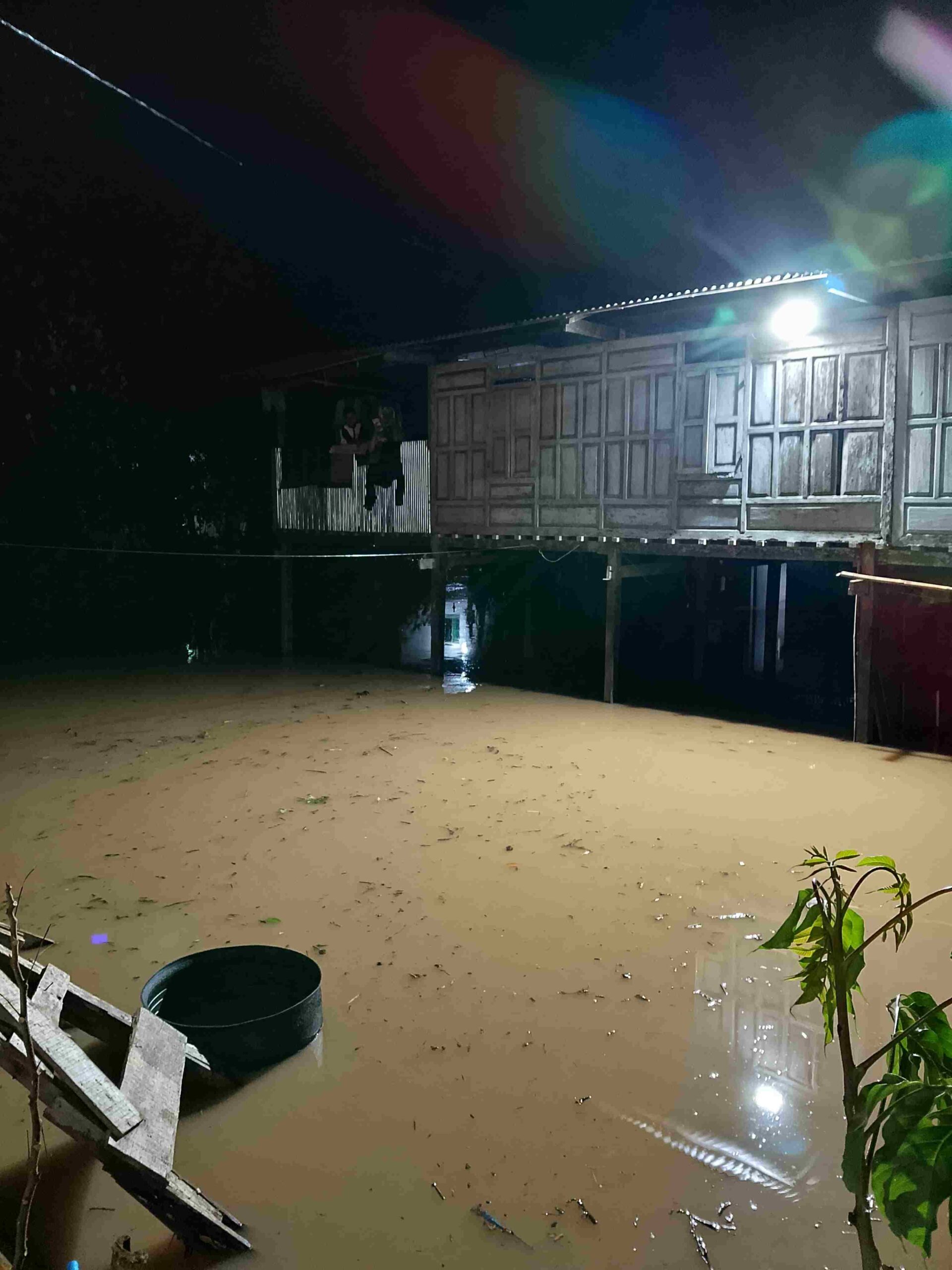 “Sudah enam kali banjir dalam dua bulan ini. Kemarin sempat surut, sekarang naik lagi. Warga masih bertahan di rumah karena sebagian besar rumah panggung,” katanya.