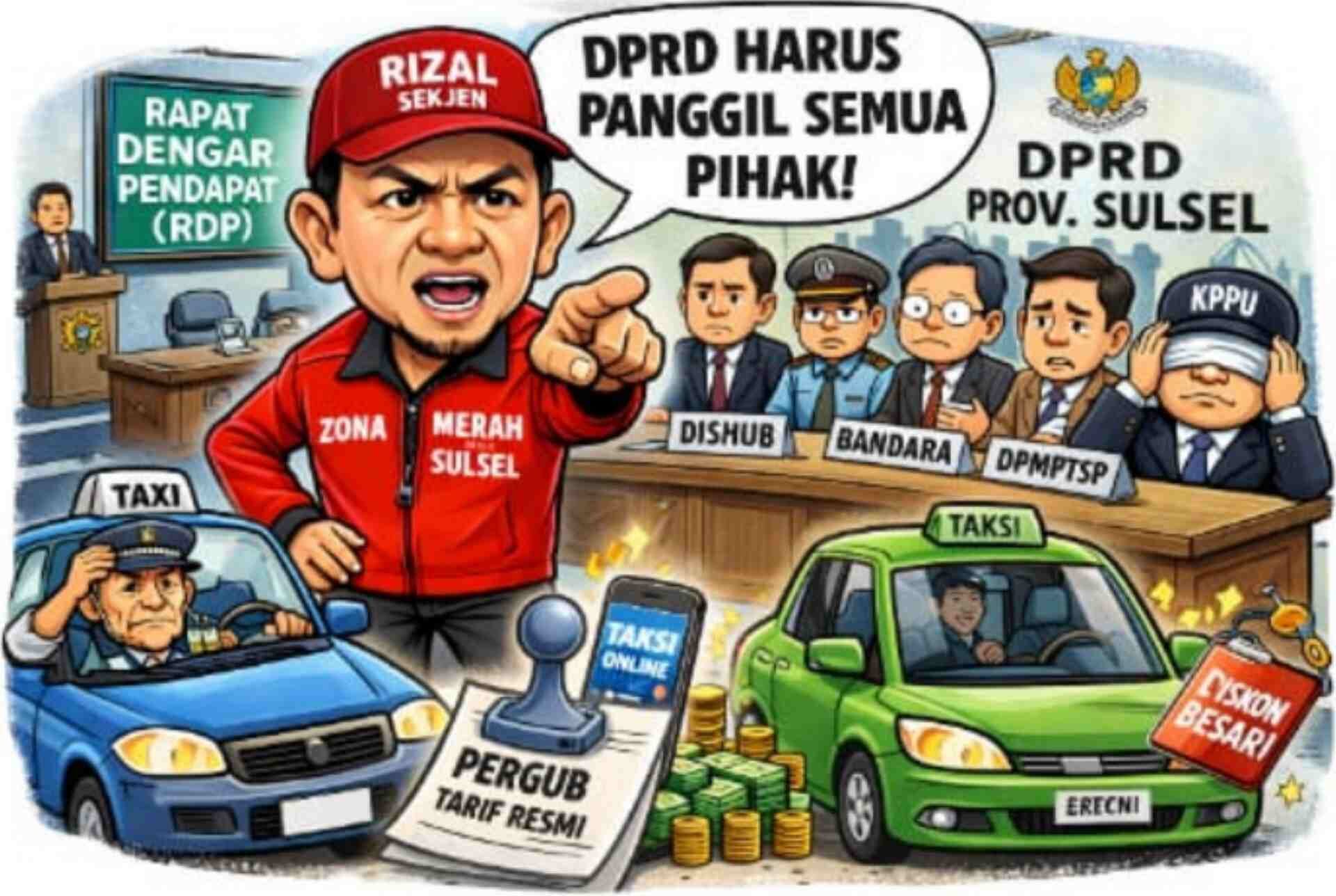 Makassar,Virantara.com— Dugaan pelanggaran terhadap aturan tarif transportasi online di kawasan Bandara Internasional Sultan Hasanuddin mendapat sorotan dari Aliansi Sorot Tajam Merah Sulawesi Selatan. Aliansi tersebut meminta pihak berwenang segera melakukan evaluasi menyeluruh terhadap sistem tarif yang diterapkan oleh operator taksi online di area bandara.